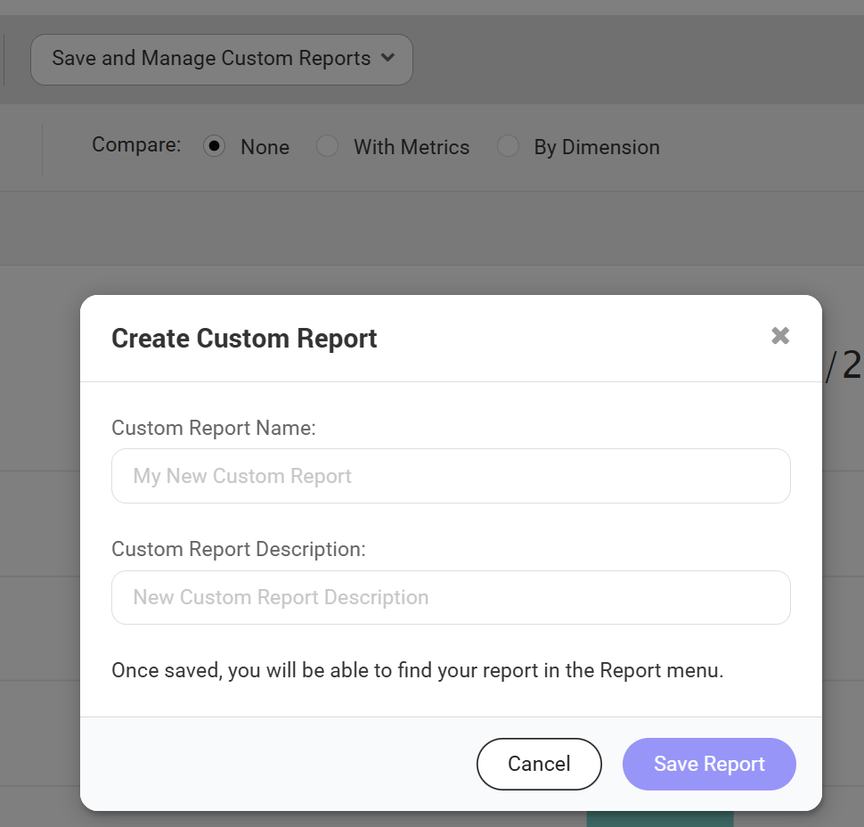 - Enter the Custom Report name.