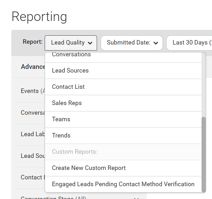 - Navigate to the Reporting module in Conversica's dashboard.