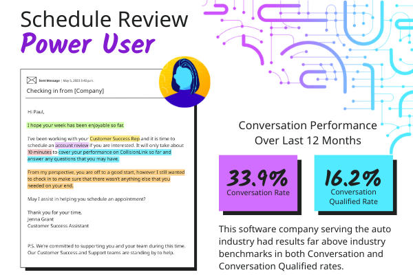 Then there’s Schedule Review, their most successful conversation which aims to schedule account reviews with their current customers.