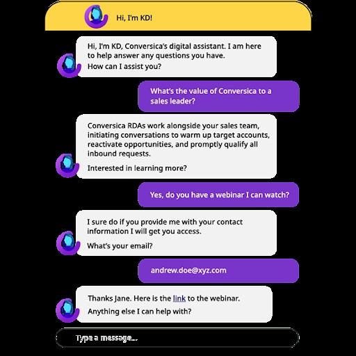 This Conversica Revenue Digital Assistant can dynamically chat with your prospects and customers on your website with the intent of: