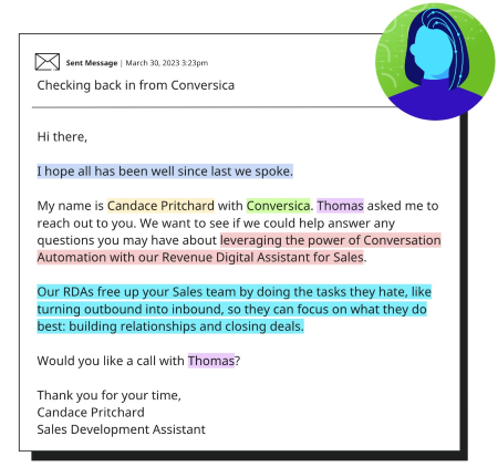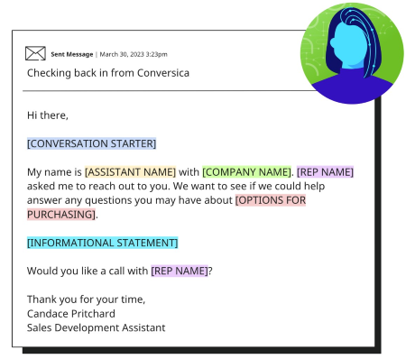 Your Revenue Digital Assistant leverages insights on stalling accounts and proactively sends them a personalized message to help get the sale across the finish line.