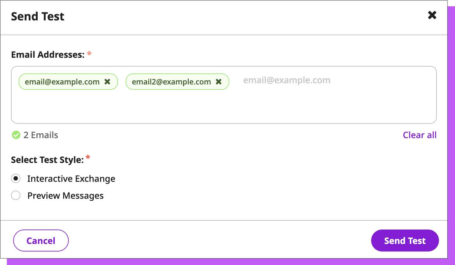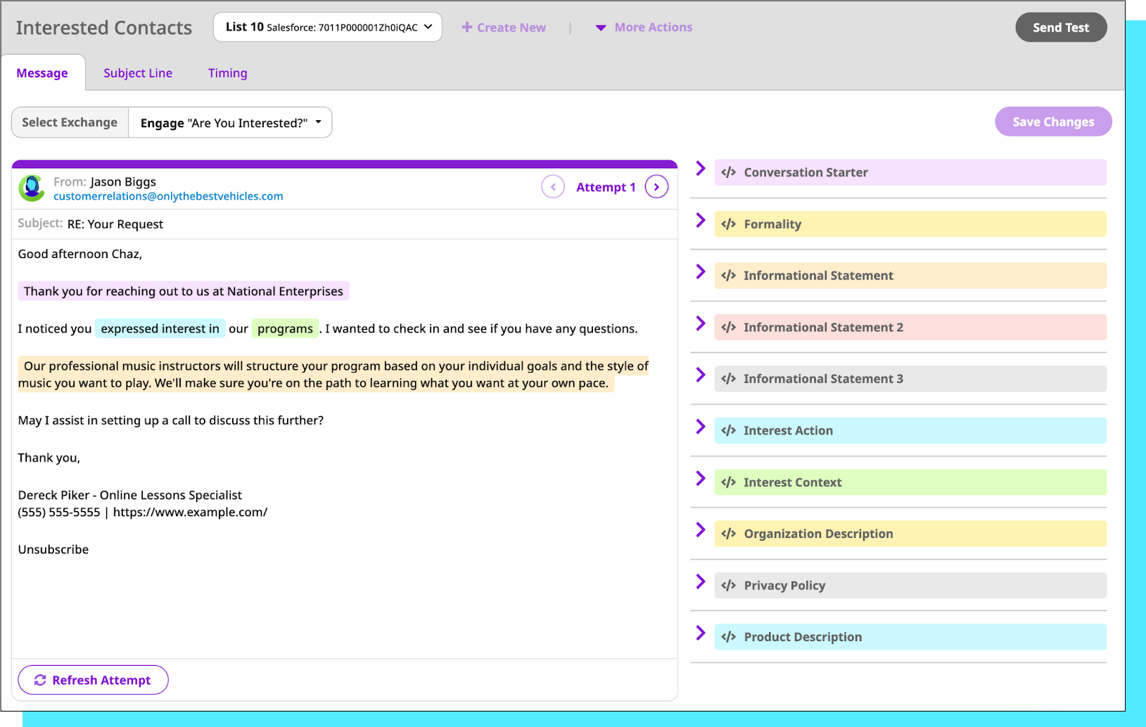 Preview Messages will send all of the exchange’s attempts to you and whoever you want to include, so you can see exactly what your lead will see for each attempt.
