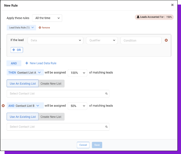 - Enhanced Customer Engagement: Our Traffic Control feature enables you to split contact assignments into up to 3 different lists, allowing you to pinpoint the messaging that resonates best with your audience.